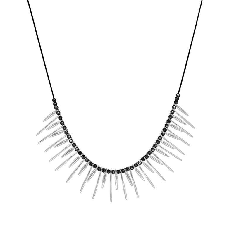 Αναδείξτε τη Rock – Chic πλευρά σας, επιλέγοντας αυτό το μοναδικό κολιέ.Είναι κατασκευασμένο από μεταλλικά στοιχεία επιπλατινωμένα με ασήμι 925 και λαμπερούς αιματίτες. Αυτό το κολιε αποτελεί ιδανική επιλογή για κάθε ώρα της ημέρας. Συνδυάζει την πολυτέλεια με τις ευεργετικές ιδιότητες του αιματίτη. Διαθέτει ρυθμιζόμενο κούμπωμα για τέλεια εφαρμογή. Υποαλλεργικό.