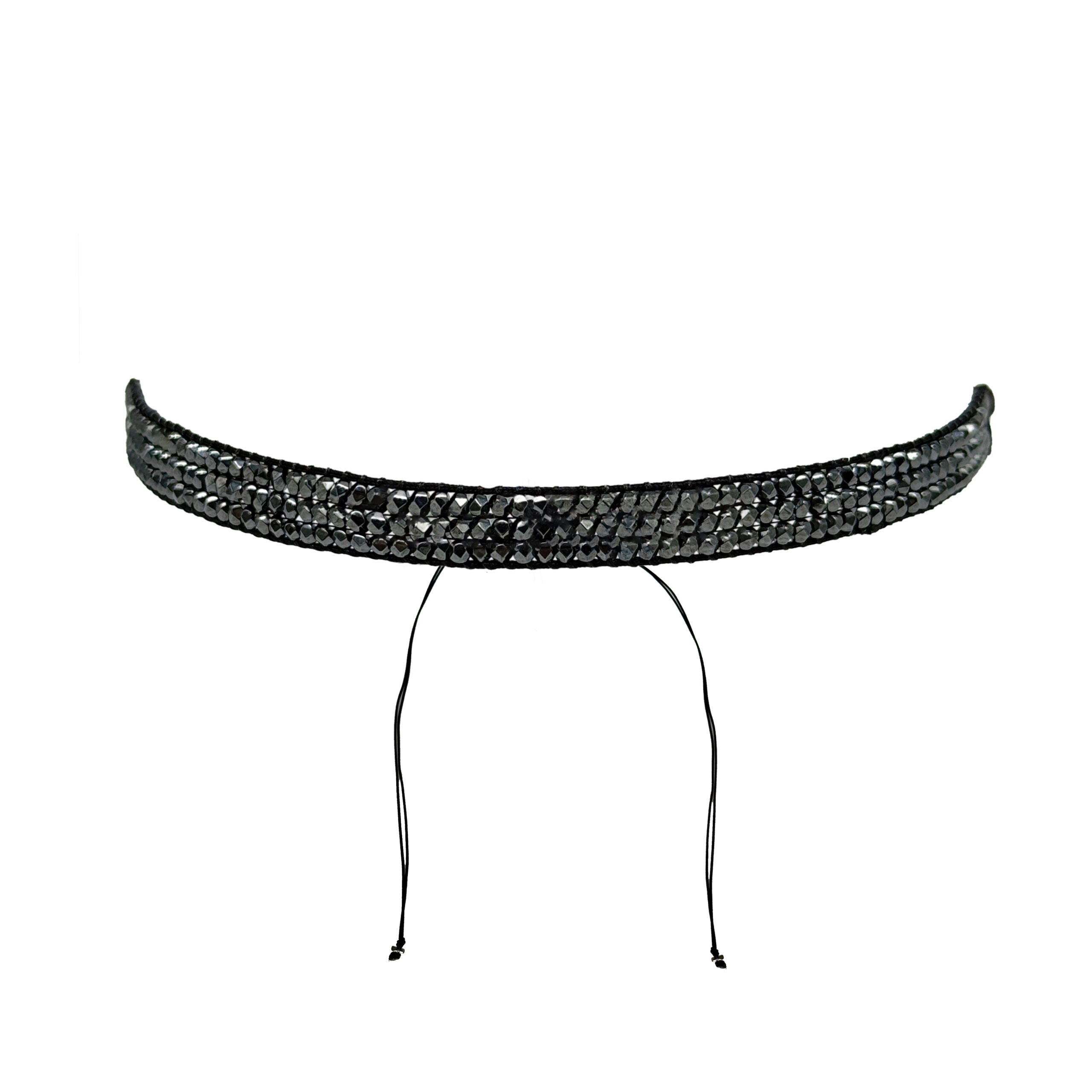 Choker υφαντό σε αργαλειό με ημιπολύτιμες πέτρες αιματίτη.Είναι γνωστός για την έντονη μεταλλική του λάμψη και τις ευεργετικές του ιδιότητες.Διαθέτει ρυθμιζόμενο κούμπωμα για άψογη εφαρμογή.